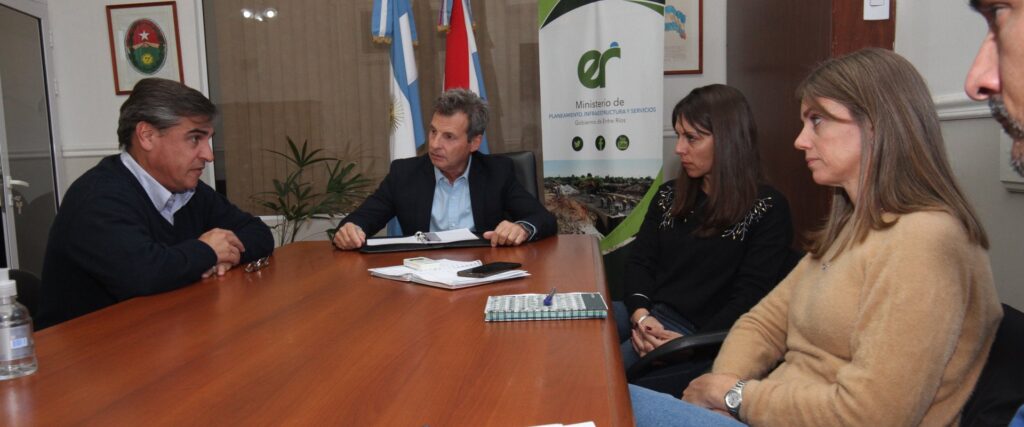 El ministro de Planeamiento, Marcelo Richard, mantuvo un encuentro de trabajo con el intendente de Cerrito, José Palacios, con el objetivo de evaluar aspectos de la ejecución de la obra de Sustitución Colector Cloacal e Instalación Electromecánica de la localidad.